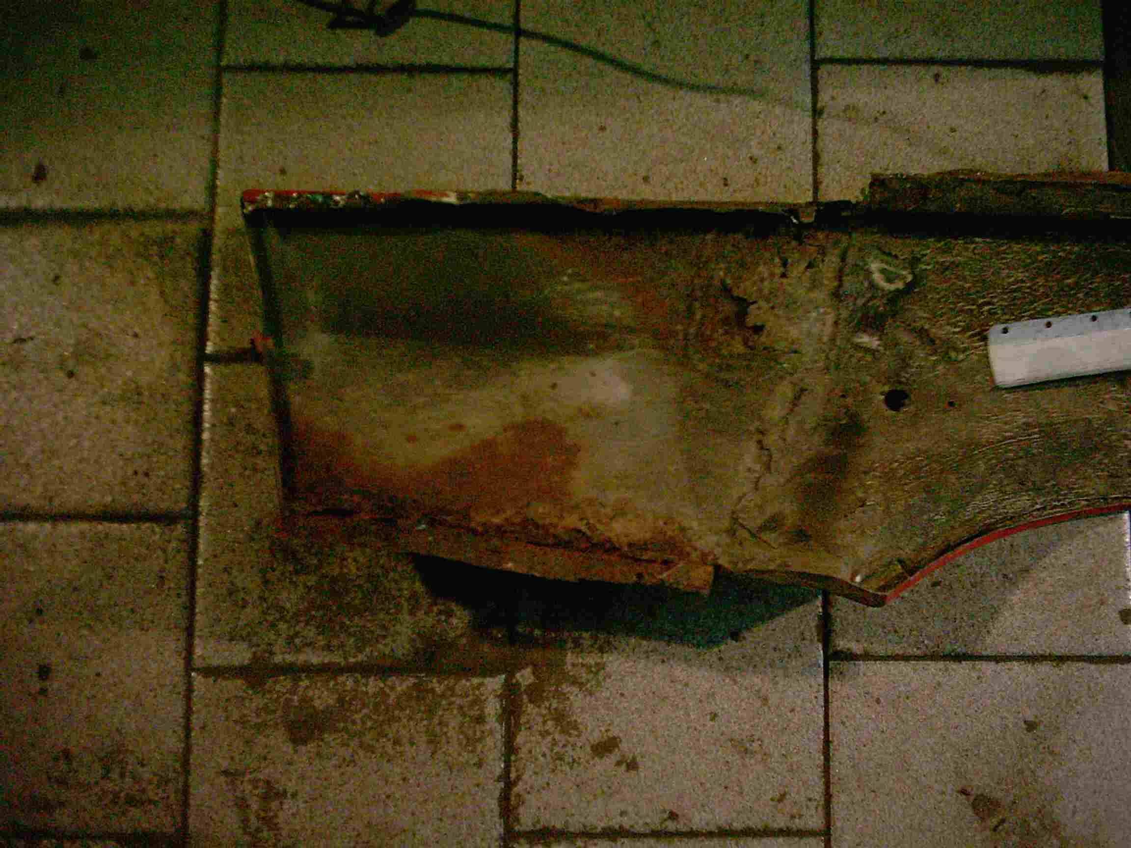 Das ist die Innenseite der Endspitze, des linken Kotflügels. Mal sehen was nach einer intensiven Flex Bearbeitung noch übrig ist.