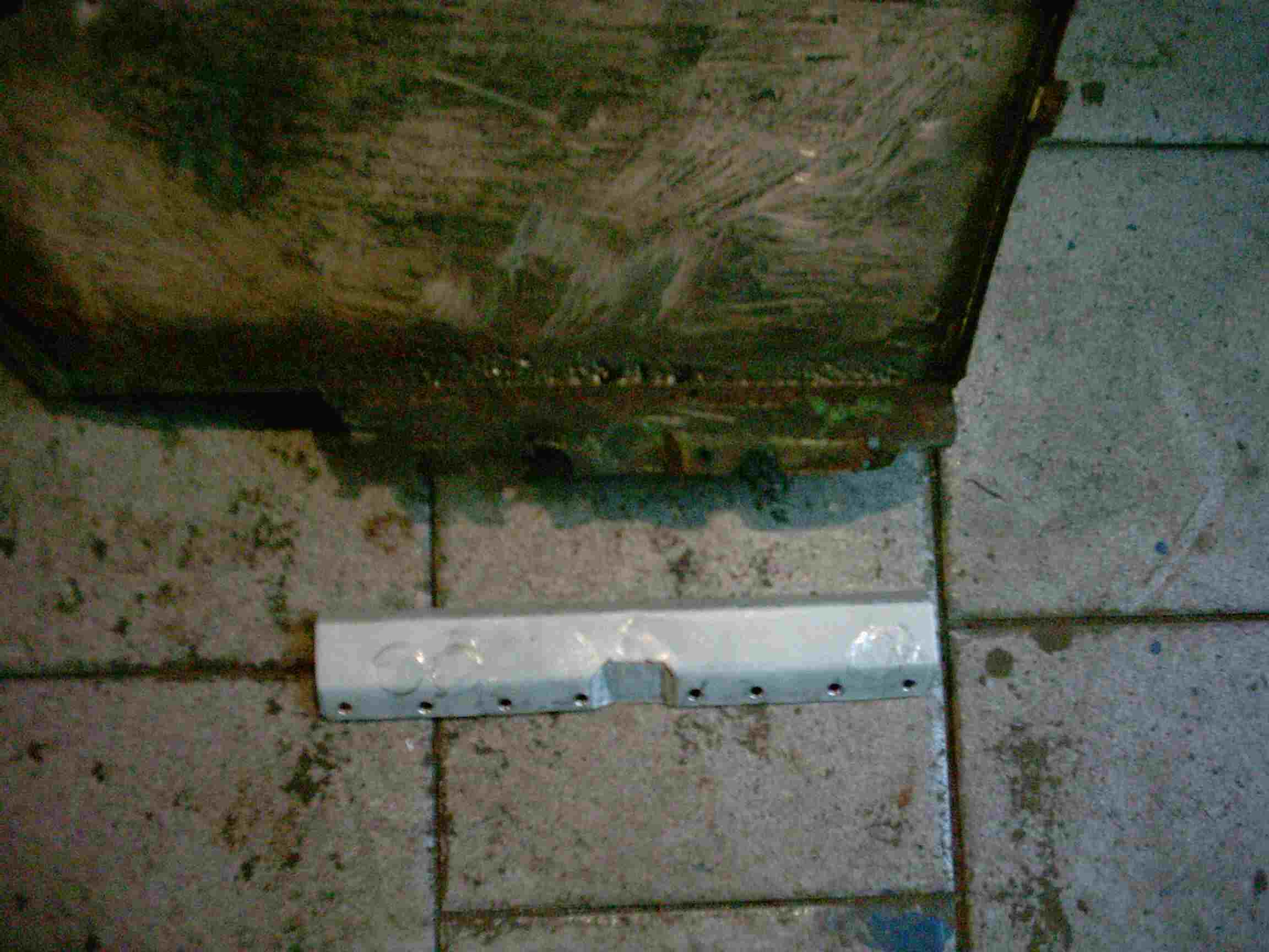 Nach dem entfernen des Steinschlagschutzes kam ein riesige Blech zum Vorschein, dass von hinten aufgeschweißt worden war. Nach dem Entfernen des Bleches, entstand ein riesiges Loch, wie man sieht!