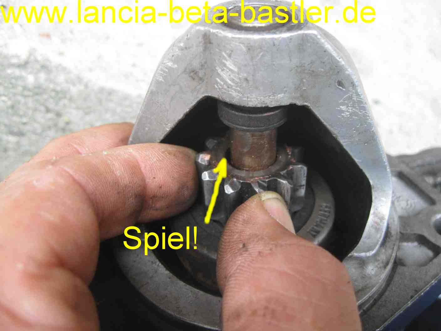 Aber das Ritzel kann auch einen Schaden haben. Ich fasse es mit den Fingern an und stelle fest, das es zu viel Spiel hat.