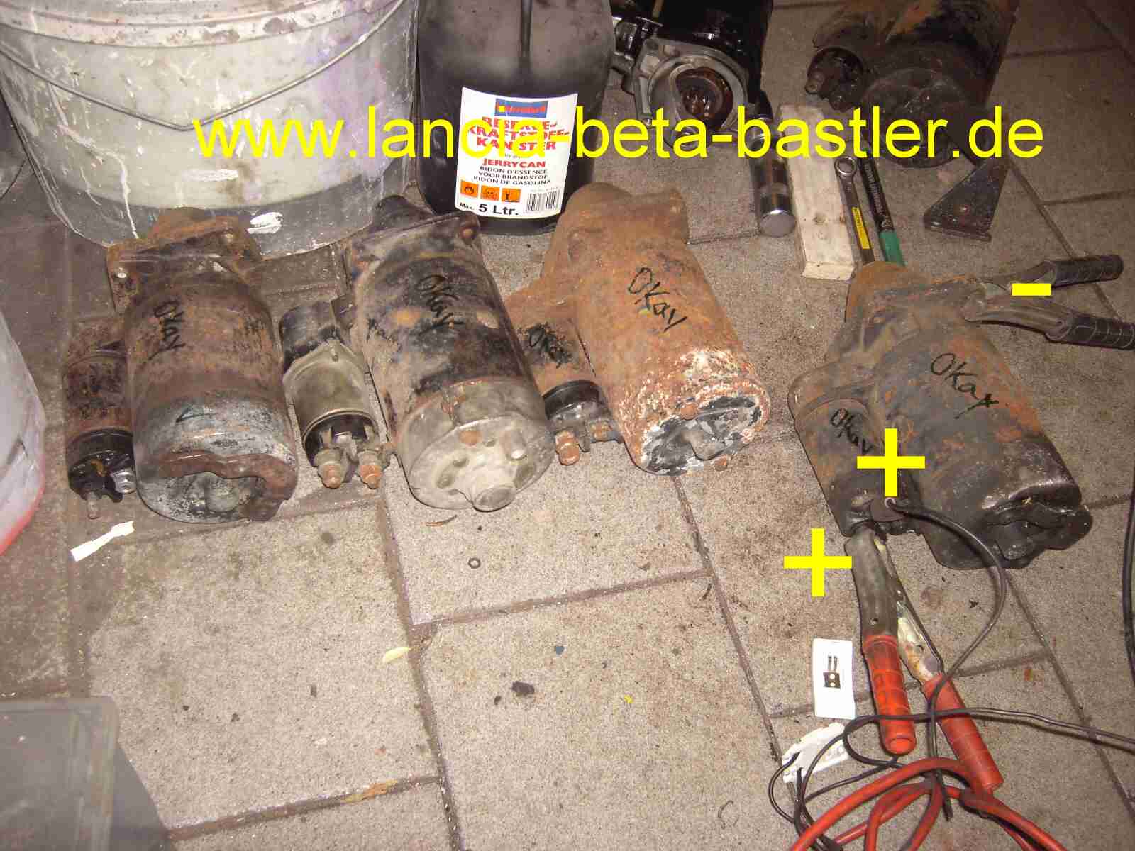 In meinem Lager sind viele verrostete Anlasser, aber sie funktionieren. Der äussere Zustand sagt also nichts über die Funktion aus. Mit Eding markiere ich die Anlasser, die in Ordnung sind.
