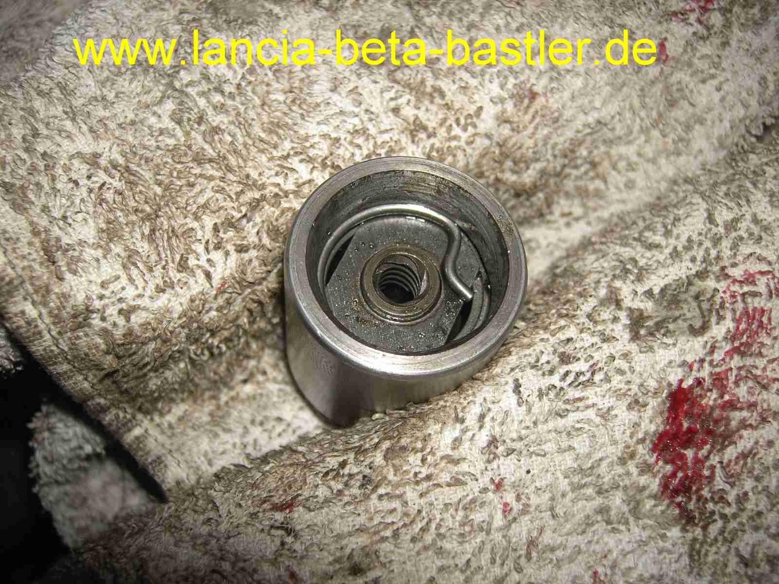 Und auf die Spindel fädle ich die Tellerfedern auf. Zwei gegeneinander und die Fünfte mit der Wölbung zu den anderen Federn!