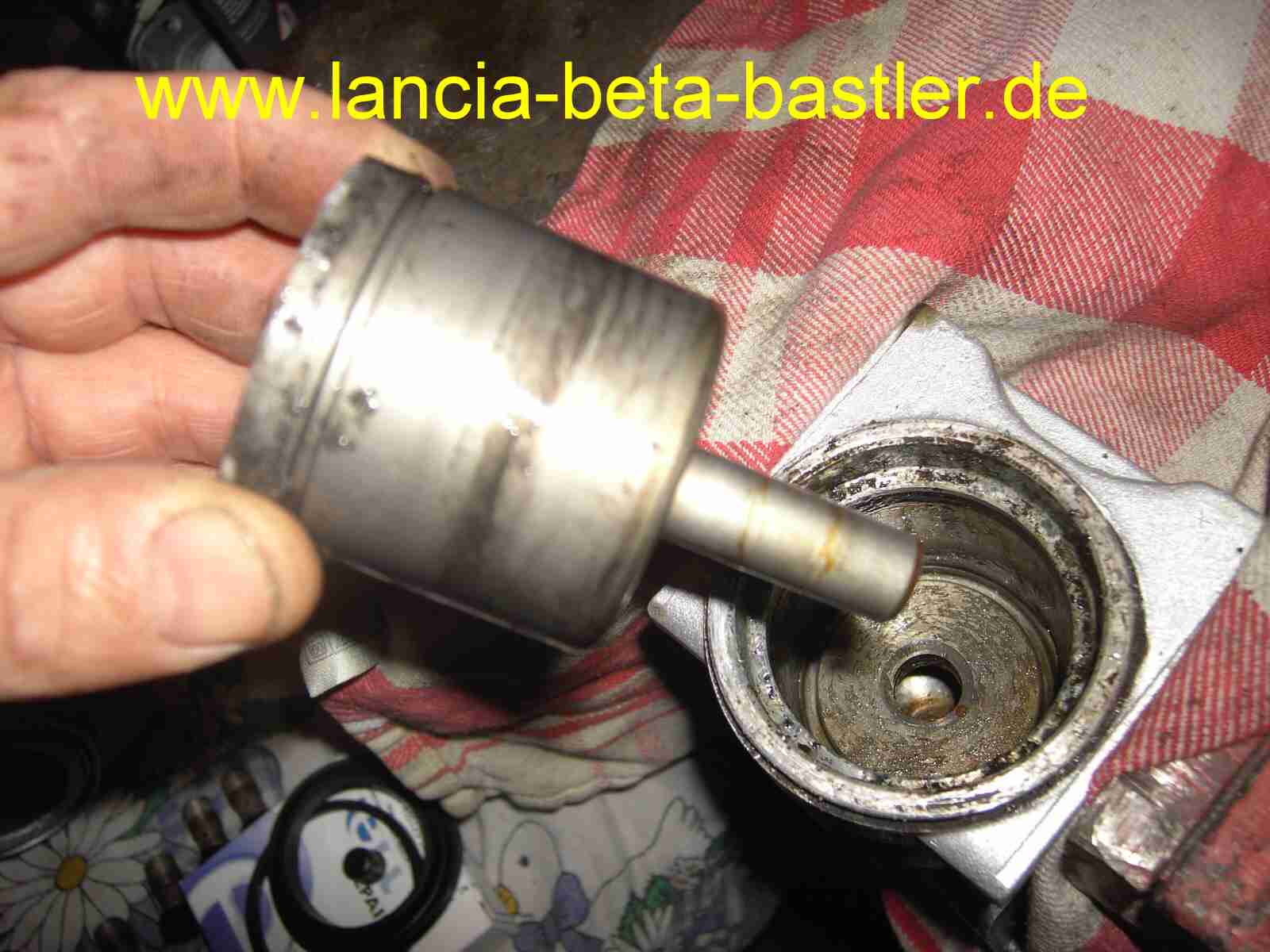 Dann drehe ich mit einer Zange, Achtung nur oben die Zange ansetzen, weil man mit der Zange den Kolben durch Macken beschädigt, herausziehen. Ihr könnt auch zur Sicherheit die Zange mit Klebeband umwickeln, so das keine Macken entstehen. Geht aber auch so!