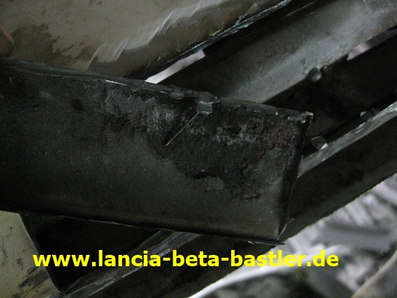 Auf der Innenseite sieht man, das es vom Innenraum rostet. Es ist zwar etwas Lack vorhanden, aber doch zu wenig für den Korrosionsschutz!
