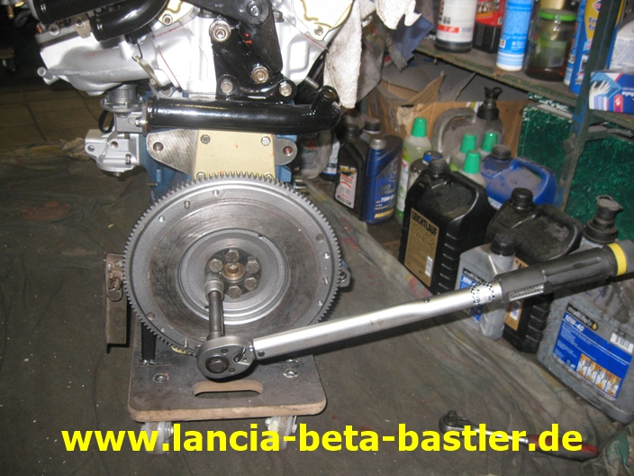 Ach, das Schwungrad fehlt ja noch! Ist aber kein Problem! ich habe das 1800 Schwungrad auch schon erleichtert! Also draufschrauben und anziehen! Aber vorher muss ich dem Motor noch ein Finish geben!
