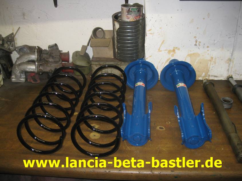 Ich soll seine alten Federbeine überholen und vorne soll die Beta Limo etwas tiefer werden. Dafür bringt mir Peter diese Federbeine zum Überholen.