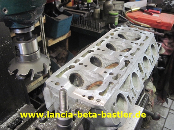 Der Zylinderkopf ist mit den Nockenwellenkästen etwas schwer, aber durch die Führungsbolzen war das Zentrieren ein Kinderspiel!
