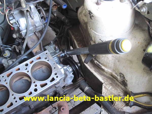 Und mit der Lichtmaschine wird der Keilriemen gespannt!