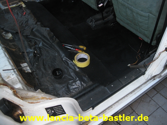 Und den Teppichboden hochklappen und siehe da, ein Ausdehnungsgefäss vom Benzintank kommt zum Vorschein!