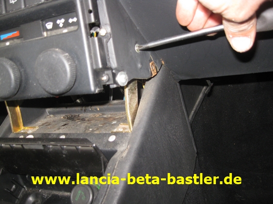 Ein Teil greift ins Andere. Die Radioblende baue ich auch gleich mit aus! Hier sind zwei Schrauben versteckt!