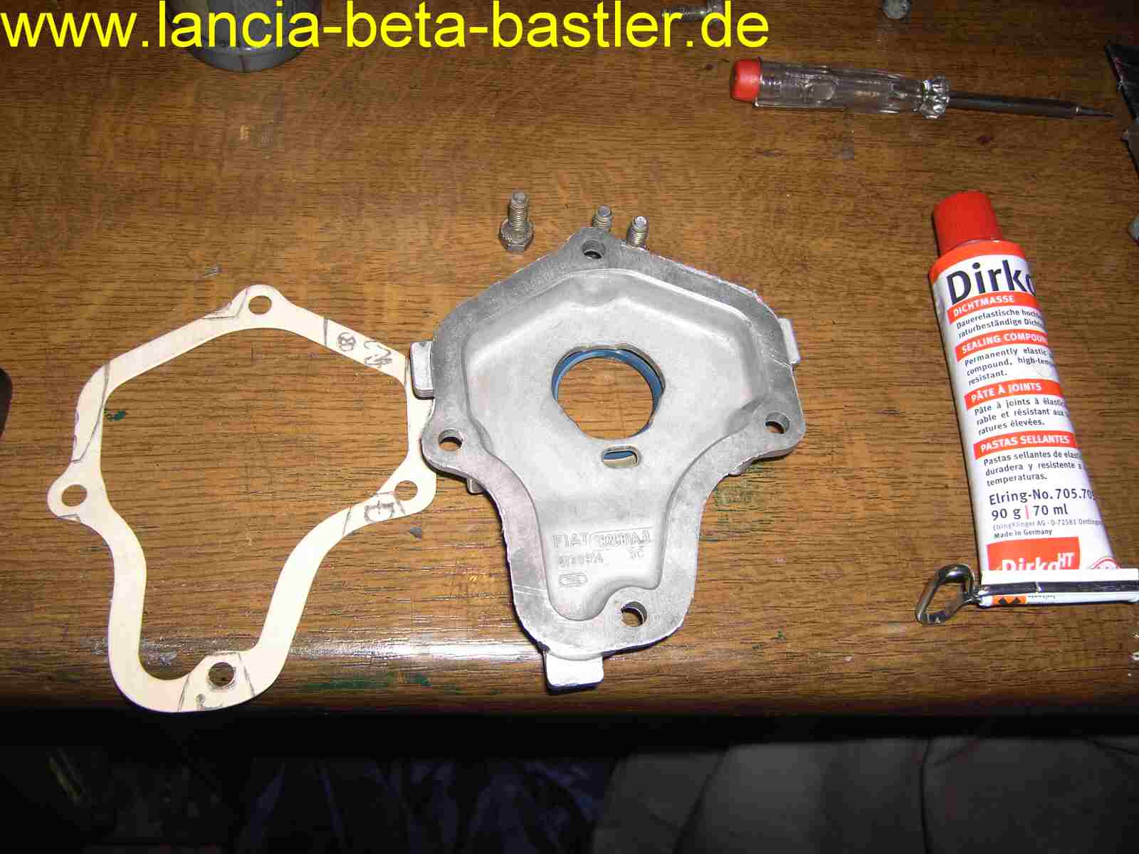 Dichtungsmasse auftragen, Dichtung fixieren und die richtigen Schrauben für den Einbau richten!