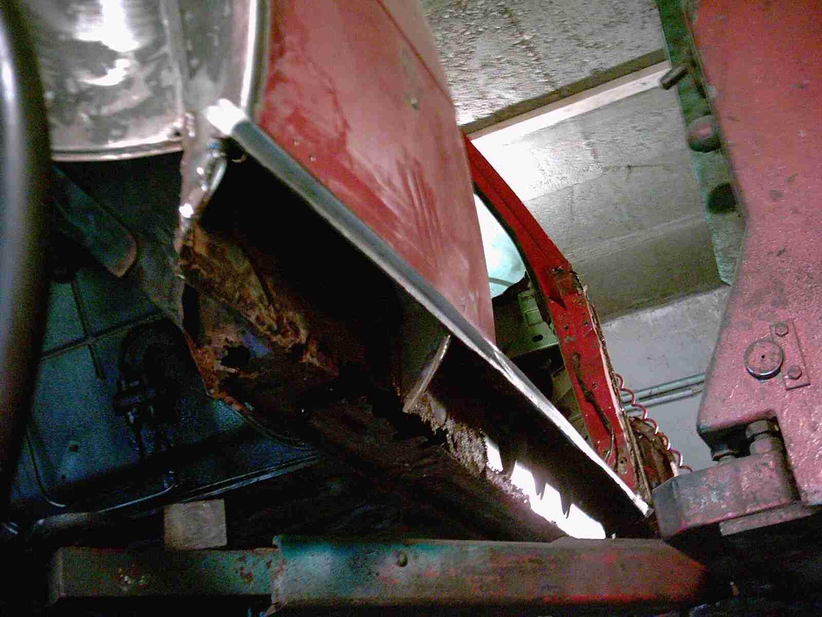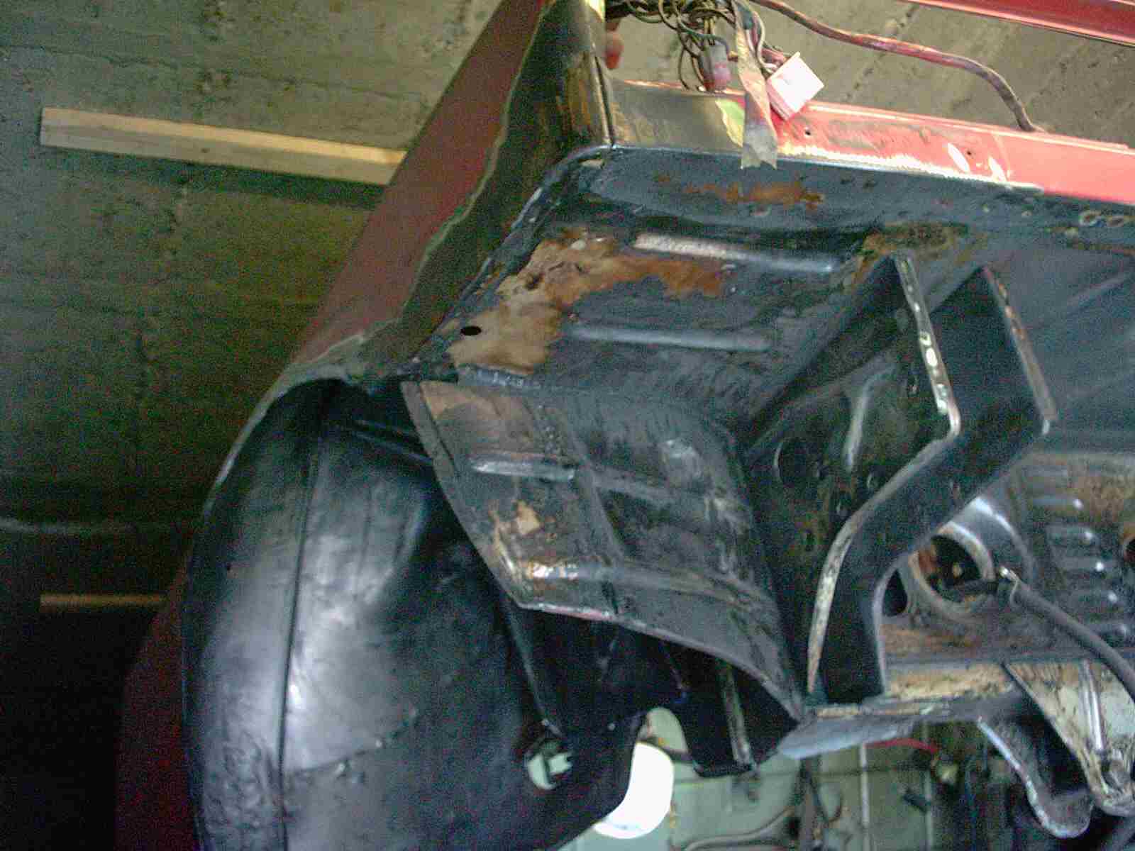 Wie geht man eigentlich an so eine Sache richtig ran. Es ist immer das Gleiche. Man schaut sich die Rostfragmente an, nimmt etwas Karton aus dem Müll, schneidet und faltet den Karton so, wie das neue Blech aussehen soll. Legt dieses Muster über die Roststelle bis es in etwa wieder die alte Form hat. Dann nimmt man eine Blechtafel und legt den Karton darüber und zeichnet die Umrisse auf das Blech, schneidet das Blech aus der Tafel und biegt das Blechteil genauso, wie das Kartonmuster. Sollte eine Sicke (Vertiefung oder Rille) nachgebildet werden, so nimmt man ein Holzbrett und fräst, bohrt oder schleift so eine Vertiefung in das Brett. Darauf wird das Blech gelegt und mit Schraubzwingen fixiert und mit einem Rundeisen, mit balligem Ende, wird die Vertiefung mit vielen Hammerschlägen in Form gebracht. Hat man das Blech fertig, wird es über die defekte Stelle gelegt und mit einem Bleistift reißt man die Umrisse an. Jetzt erst, wird die schadhafte Stelle rausgeschnitten und das neue Blech wird eingepasst. Schweißnaht verschleifen und gut ist.