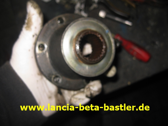 Als erstes schaue ich mir bei einem ausgebauten Teil den Aufbau an, bevor ich an mein Beta Coupe zerlege! Das Ist der Lagerbock mit der Zwischenwelle!