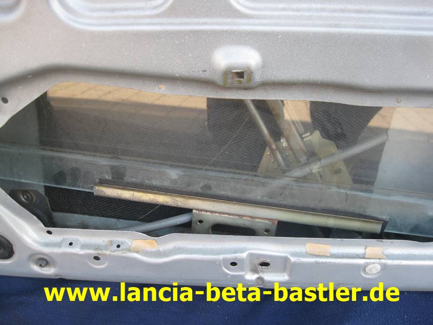 Eine Fahrertür vom Lancia Trevi mit Schloss, Scheibe und Zierleisten. Die X Befestigungen der Zierleiste ist auch noch vorhanden.