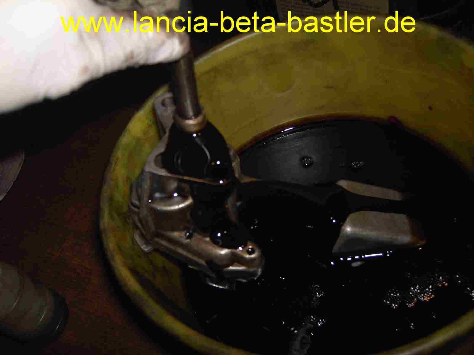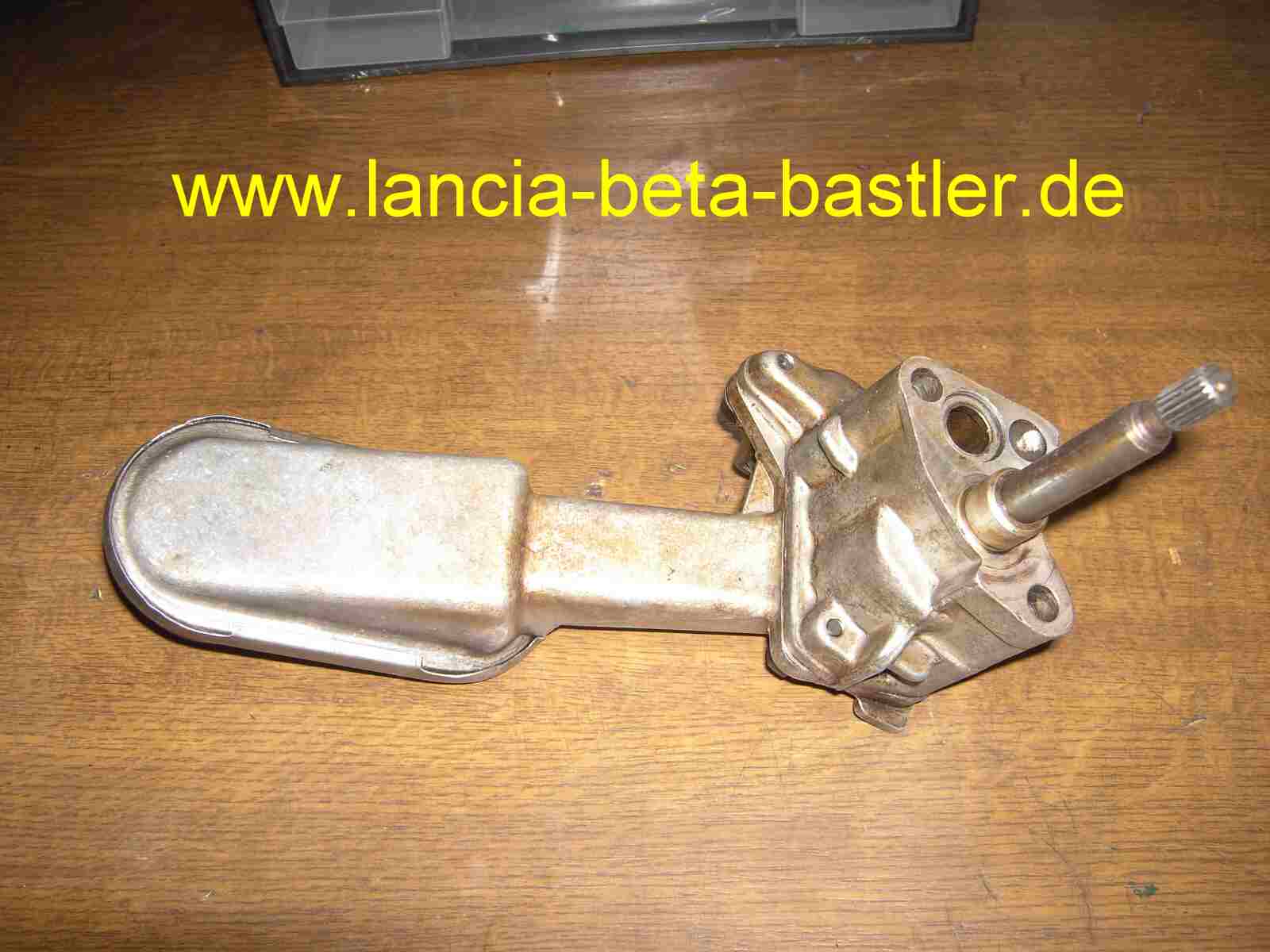 Wer hat schon einmal die Ölpumpe am Beta wechseln müssen und warum? In meiner langen Erfahrung ist mir bis jetzt noch keine defekte Ölpumpe vorgekommen. Beim Montecarlo brannte im Standgas, im warmen Zustand das Ölkontrolllämpchen. Der Öldruck war zu gering. Bei höheren Drehzahlen war der Öldruck aber bei 3,5 bar und reichte aus. War die Ölpumpe defekt? Nein! Der Montecarlo Motor hatte schon 170 000 KM auf der Uhr und ich fuhr mit einer Viervergaseranlage. Diese fütterte den Motor so gut, das Benzin ins Motoröl gelangte und es verdünnte. Dabei wurden die Pleuel- und die Kurbelwellenlagerschalen ausgewaschen und der Öldruck ging im warmen Zustand im Standgas verloren. Schuld war hier also nicht die Ölpumpe. An meinem Beta Coupe hatte ich das Problem, das der Öldruck im Standgas in Ordnung war, aber bei 2000 1/min Umdrehungen der Öldruck erst stieg und bei höheren Drehzahlen wieder sank. Auch hier war nicht die Ölpumpe defekt, sondern die Nockenwellenkästen hatten zu großes Spiel bekommen und konnten den Öldruck bei höheren Drehzahlen nicht mehr halten. Die Nockenwellen sind nicht mit Lagerschalen gelagert, sonder schwimmen in Öl in den Bohrungen der Nockenwellenkästen. Diese Kästen sind aus Aluminium. Einmal trockengelaufen frißt die Nockenwelle in der Bohrung des Kastens und das Loch weitet sich. Der Öldruck kann nicht mehr gehalten werden.. Beim Zerlegen eines Lancia Beta Motors sollte aber trotzdem die Ölpumpe kontrolliert und richtig eingebaut werden. Dabei kann schon der eine oder andere fatale Fehler gemacht werden. Falscher Einbau, kein Öldruck, Folge Motorschaden! Die Ölpumpe ist der Herz unseres Beta Motors! Also, Augen auf und bei diesem Thema wieder etwas lernen!