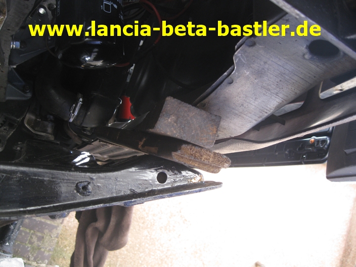 Und die Schraube des Getriebehalters, der auch mit dem Fahrschemel verbunden ist.