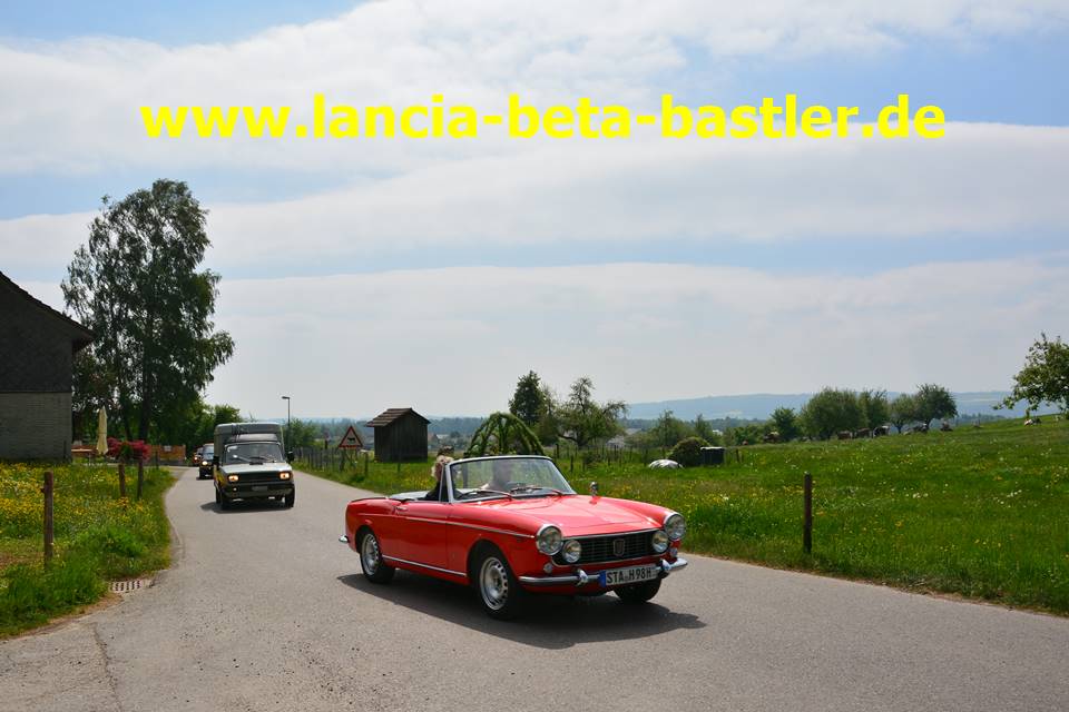 Oben auf dem Parkplatz stehen wieder unsere Fahrzeuge zur Weiterfahrt. Hier ein Lancia Beta Spider aus München!