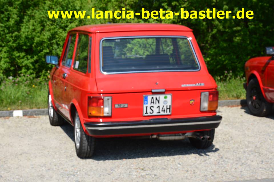 Daneben wieder ein roter A112 aus dem Jahr 1981. Der Bianchi gehört Reinhard Kotschner. Man beachte auf der Anhängerkupplung den Schutzmannkopf aus dem Kasperle Theater.