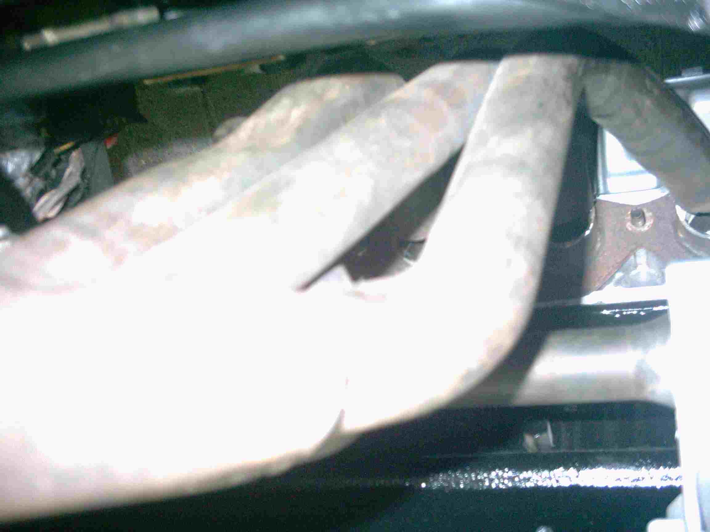 Ups, da stimmt doch etwas nicht. Der Winkelausgang stimmt, aber der Krümmer kommt 20cm unterhalb des Unterbodens heraus. Er ist viel zu lang. Der Auspuff würde so direkt auf dem Boden schleifen, so geht das doch nicht. Also, ganz so einfach ist das Ganze doch nicht. Da muss die Säge noch öfters ran.