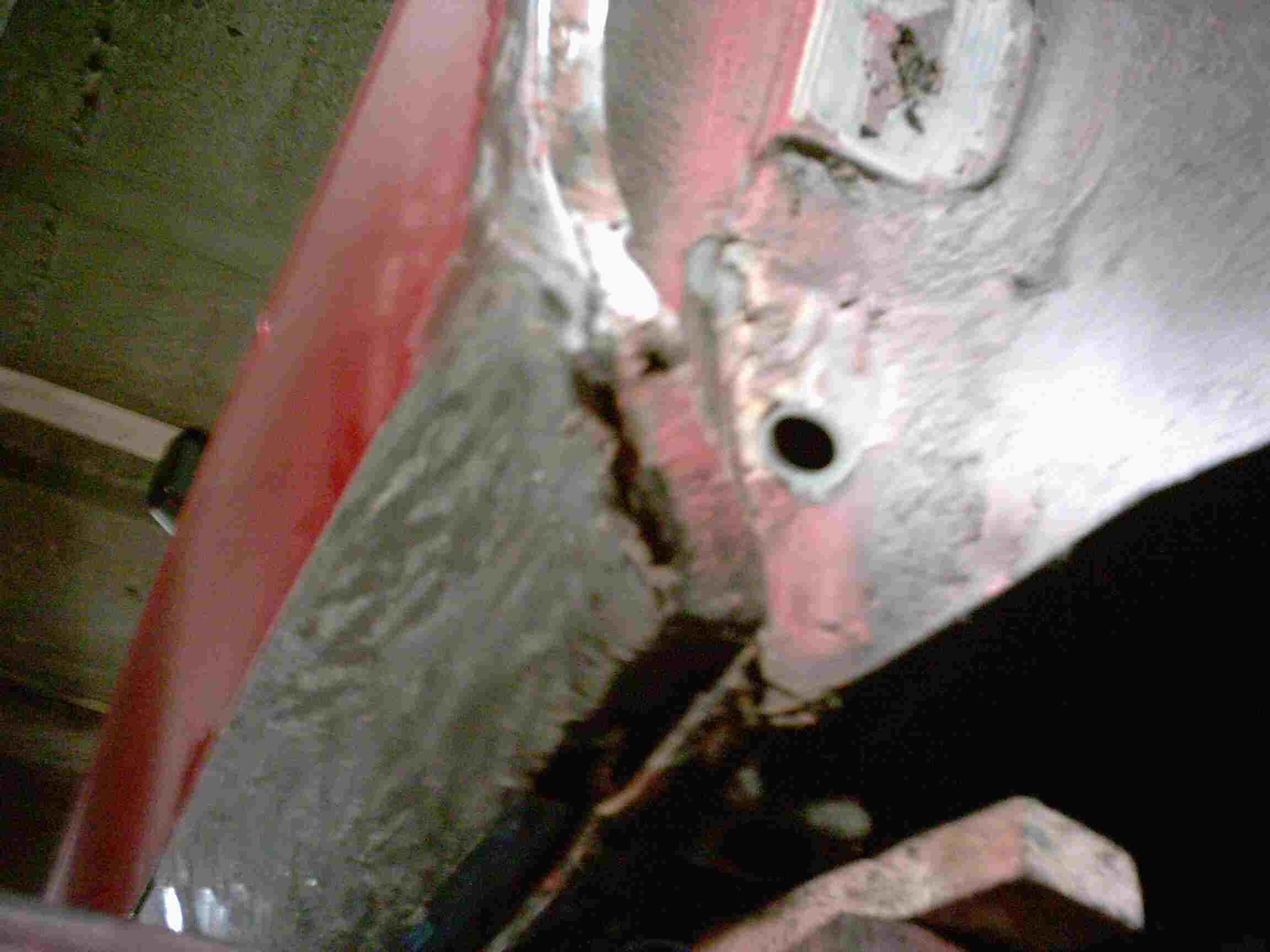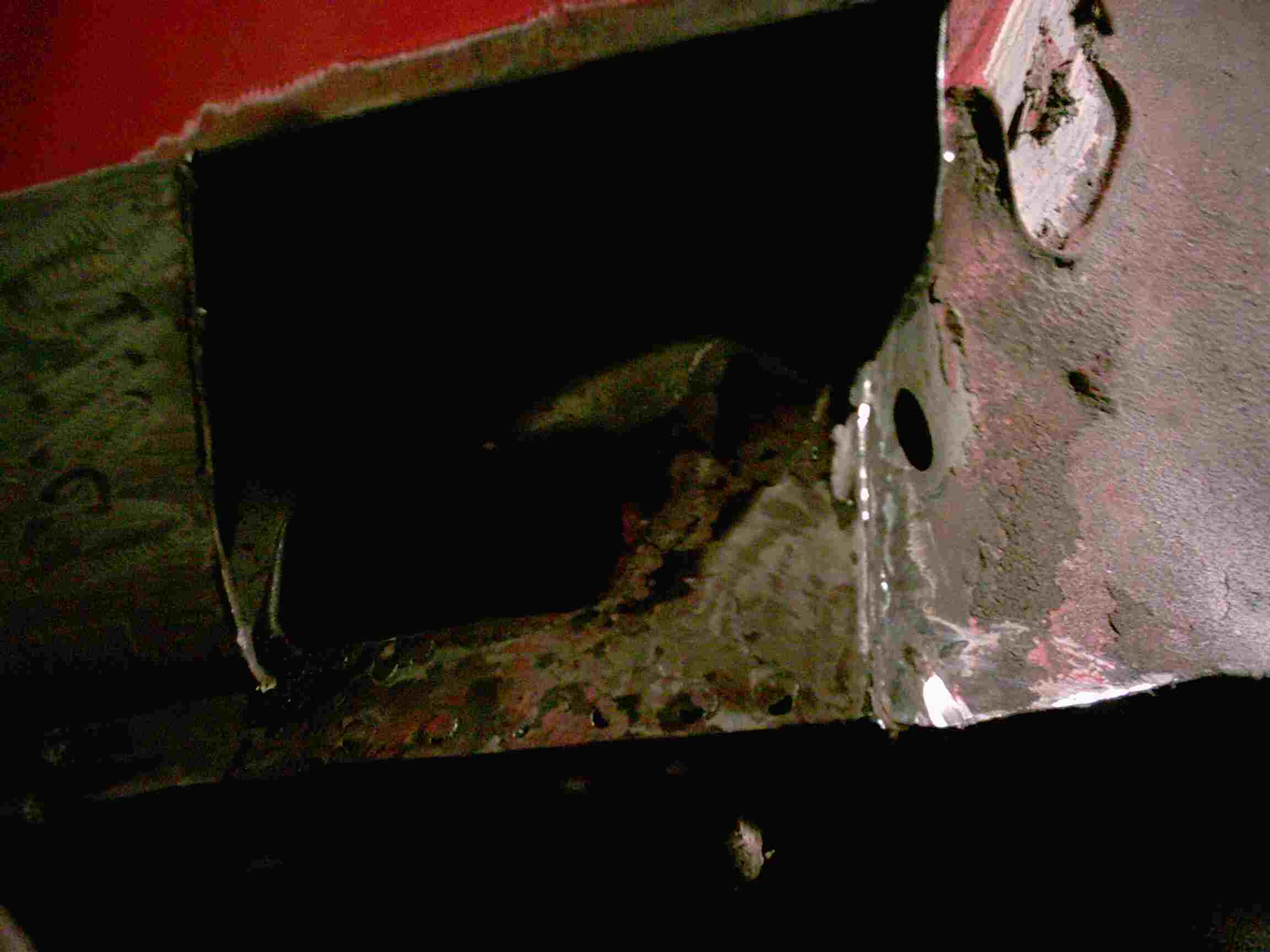 Die Endspitze wurde großzügig geöffnet und jetzt kann man erkennen, das der innere Schweller auch schon angegriffen ist. Da muß auch etwas getan werden.
