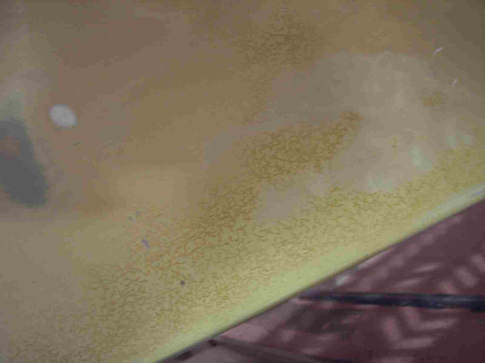 Die Lackierung der Motorhaube weisst viele Risse auf. Ich glaube der Klarlack ist hier gerissen. Es könnte aber auch eine Nachlackierung mit Spraydosen sein. Wer weiss?