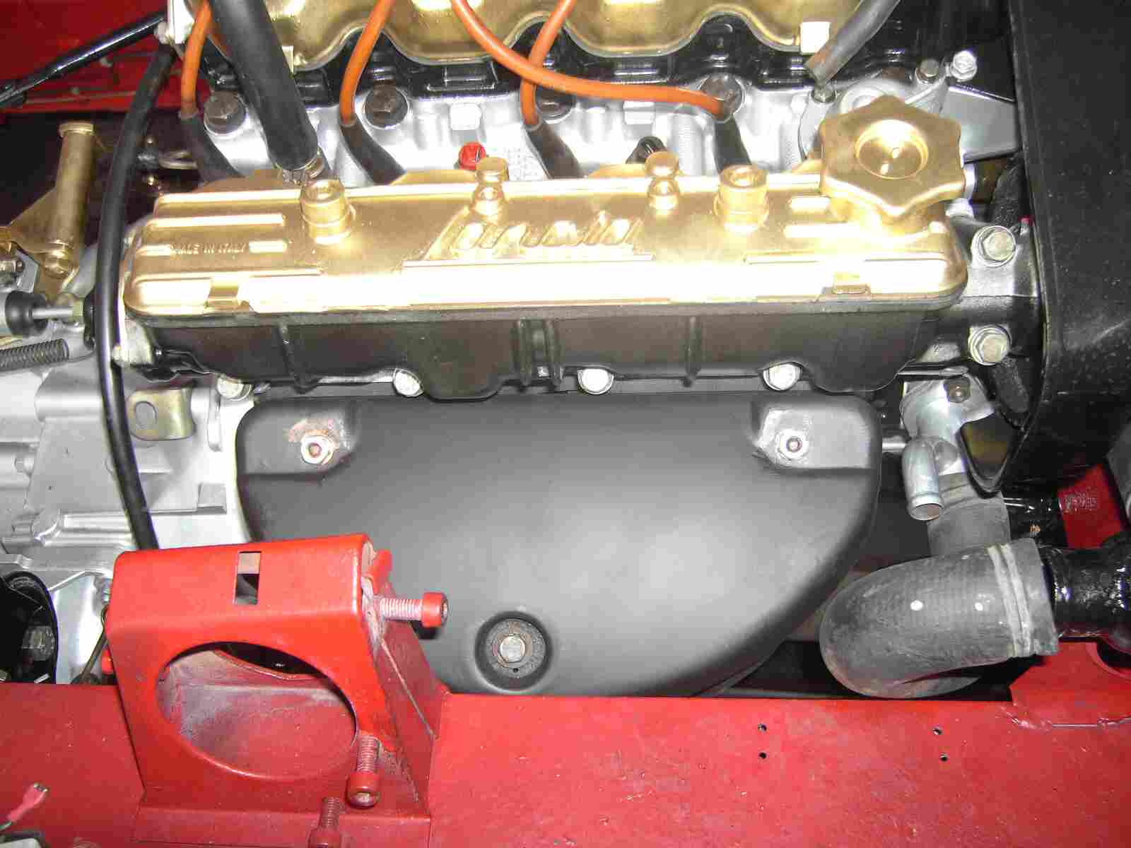 Könnt Ihr über den Auspufftopf das grosse Hitzeschutzblech aus Alu sehen! Vergesst dieses bloss nicht beim Einbauen der Auspuffanlage, sonst brennt Euer Lack komplett im Motorraum weg und das sieht dann ganz schön schei... aus.