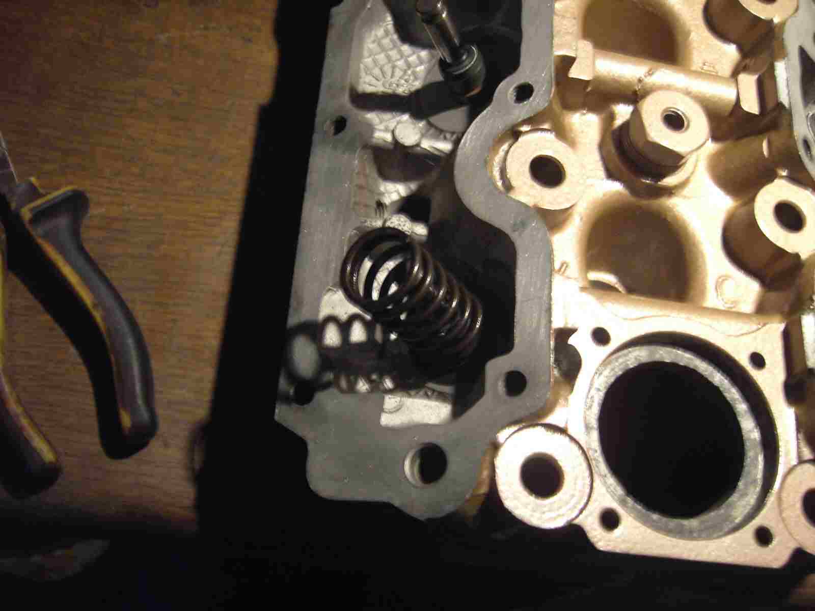 Egal, ob es ein Turbomotor oder ein Betamotor ist! Als erstes werden zwei Unterlegscheiben um das Ventil gelegt (Auflage für die kleine und große Feder) und dann die beiden Ventilfedern!